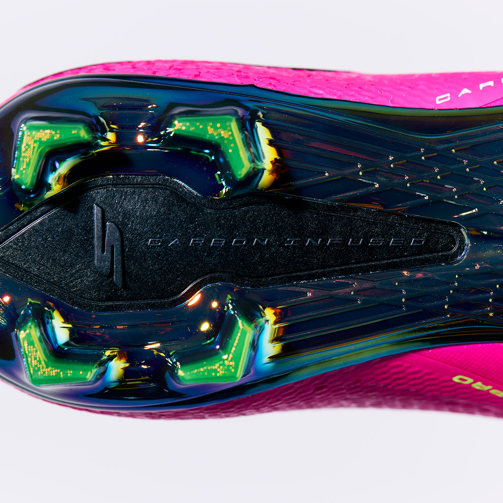 La plaque infusée de carbone à l'avant du pied, en instance de brevet, offre un rapport rigidité/poids exceptionnel, favorisant la stabilité et un retour d’énergie supérieur.